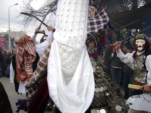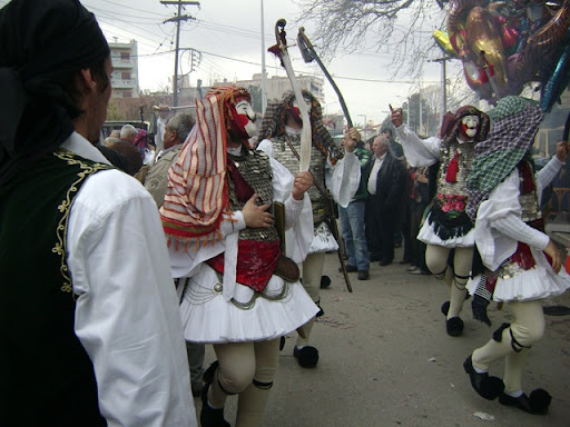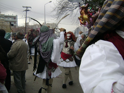 Χορευτές του ομίλου "Γιανίτσαροι και Μπούλες" κατά την είσοδο του μπουλουκιού στο πάρκο, μπροστά απο την κετρική είσοδο